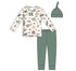 Beautifully coordinated newborn essential, ideal for hospital bags, first photos, and gifting. Crafted from ultra-soft, breathable bamboo, this three-piece set includes a cozy top, pull-on pant, and matching hat for effortless outfitting.