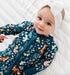 Alice Woodland Wonderland — Equal parts magic and cute, Alice and her woodland wonderland promise cozy autumn vibes. A calming teal background is adorned with curious foxes and squirrels, elegant butterflies and doves, and soft woodland florals. WHY BIRD & BEAN? Made from the highest quality, extra soft bamboo fabric, our baby pajamas + kid's pajamas are a hit! Our bamboo pajamas are made with our buttery soft bamboo/spandex blend with the perfect amount of stretch + softness. Plus, we make our fabric slightly heavier weight to make our pieces last. Our fabric will hold its shape, color, + quality wash after wash. Please read our many reviews from happy customers! Made with ❤️ and our luxury Bambeanie® bamboo fabric. GREAT FEATURES: two-way zipper design for easy changes softest + stretchiest fabric fold over cuffs on hands + feet adorable designs great for littles with sensitive skin breathable + temperature regulating made with sustainable bamboo