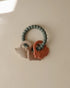 Help little ones explore sensory rich shapes and textures with a teething ring that features three prehistoric dino creatures. Made from 100% food grade silicone, teething babies will enjoy sinking their gums into the soft material that satisfies the natural urge to chew. Featuring four earthy colors and a raised leaf texture around the ring, this toy inspires playful moments and creates opportunities for discovery.