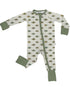 Lake Fish Print with Sage Green Trim Our Zip Pajamas feature a two way zipper, convertible feet and scratch mitts for sizes 0-3 months and 3-6 months. Extra length for longer wear! 95% bamboo from Viscose, 5% spandex Machine wash cold on gentle with like colors. Tumble dry low, if needed.