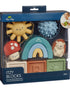 Stack, Squeeze & Explore! Build imagination from the ground up with Itzy Blocks™. This 10-piece play set features squishy-soft blocks and textured characters to stimulate the senses and spark creative storytelling.