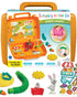 Sensory on the Go play kits are a fun and delightful way for preschoolers to explore their senses, develop their fine motor skills and promote emotional well-being, all while on the move! Children will engage their sense of smell, sound, touch and sight with this farmer’s market themed sensory activity set. With green apple scented play dough, fruit and veggie shaped cookie cutters, a playscape scene, adorable farm friend stickers, sound toys and more – this kit captures the spirit of vibrant outdoor farmer’s markets and provides an interactive way for kids to learn. The carefully selected components encourage creativity and promote critical thinking, as kids set up and shop their way through their very own farmer’s market playland. Preschool kids will love exploring all the different textures, sounds and shapes – while imaginative play keeps them entertained. The farmer’s market theme is also a great way to teach children about where their food comes from, how it’s grown & harvested.