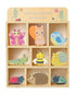 A beautiful set of cute & colourful spring garden creatures & display shelf! This not only looks great on display on a nursery shelf, they are also great for encouraging imaginative play! The 9 brightly coloured creatures are great for helping to develop shape & colour recognition, as well as encourage children to learn about garden wildlife and the creatures they might find! The chunky wooden pieces are perfect for little hands to grasp. The set contains: - A wooden display shelf - Butterfly - Squirrel - Bird - Caterpillar - Honey Bee - Snail - Ladybird - Hedgehog - Beetle This product is made from FSC® - certified wood. By choosing this product, you are supporting responsible management of the world's forests. This product comes in beautifully designed, fully recyclable packaging.