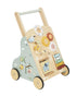 Wooden baby walker with different side function. It assist infants in learning to walk and also help their practice balance and coordination as they push themselves around using their legs.