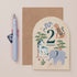 This milestone age card is a lovely gift for an animal loving child turning two today! Featuring artwork of safari animals surrounding a large number 2, this 2nd birthday card is a gender-neutral design perfect for all kids. The unisex colour palette of this 2nd birthday card makes it suitable for all kids turning age two.