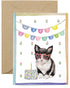Cats are cool, and this adorable kitten with groovy heart-shaped sunglasses is sending a purr-fect birthday greeting to all your feline-loving friends! With a colorful banner spelling out “Happy Birthday” draped across a sweet floral background and a tiny cake with pastel sprinkles, this is a card that’s sure to charm any cat lover on your list.