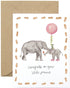 This sweet, hand-illustrated new baby card features a loveable momma elephant and her baby with a celebratory balloon and a cute peanut border. With hand lettering and an adorable message, it’s a perfect pick to welcome a new little peanut into the world. Card comes with a matching envelope.